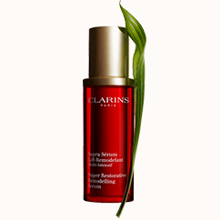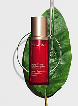 Tutustu Clarins Super Restorative Remodelling Serumiin. Poikkeuksellinen anti-aging-hoito, jonka kasveista voimansa saava koostumus auttaa kohottamaan ja muotoilemaan kasvojen äärirajoja ja palauttamaan ihon sisäisen hehkun.