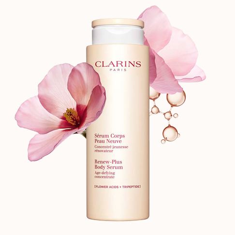 Clarinsin uusi Renew-Plus Body Serum sisältää KUKKAHAPPOJA + TRIPEPTIDIÄ. Innovatiivinen koostumus parantaa ihon tekstuuria ja vähentää ihon karheutta, ryppyjä ja epätasaisuuksia. Samalla se kiinteyttää ja tasoittaa ihoa myös pitkällä aikavälillä lisäten ihon kimmoisuutta.