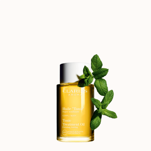 Vähennä raskausarpia vahvistamalla ihoa ravitsevan, kosteuttavan ja silottavan Tonic Body Treatment Oil -vartaloöljyn. Kurjenpolvi-, rosmariini- ja minttu-uuteen sekä hasselpähkinäöljyn tähdittämä koostumus on todellinen Clarins-suosikki!