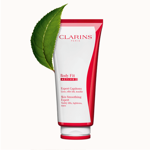 Clarins Body Fit Active sisältää Skin Smoothing Power Complex -yhdistettä. Sen sisältämä luonnonmukainen matcha-teeuute kiinteyttää ja kohottaa ihoa näkyvästi, silottaa reisiä ja pakaroita, ja häivyttää näkyvästi sitkeintäkin selluliittia.