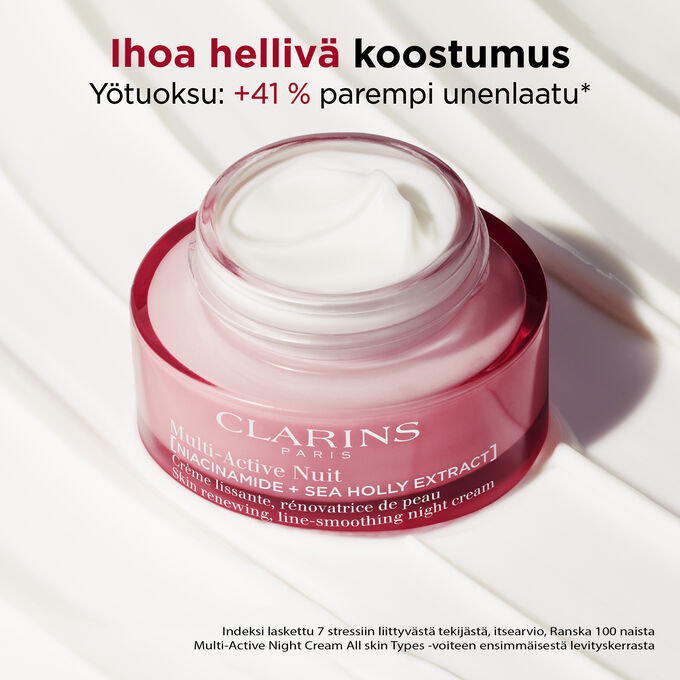 Ihoa silottava ja uudistava yövoide sisältää [NIASIINIAMIDIA + PIIKKIPUTKIUUTETTA]. Täyteläinen, hoitava koostumus.